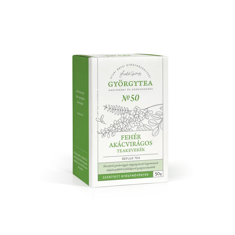 Ezek a szárított gyógynövények kerültek egymás mellé a Györgytea legújabb termékében, a Fehér akácvirágos teakeverékben, mivel jól keverhetők, és így hatásuk összeadódik.